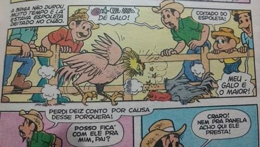 Chico se depara com um galo ferido e o recebe de um homem que perdeu a aposta numa rinha de galo. Depois de um tempo cuidando do galo, este se espanta com a mãe do Chico, que vinha amolar o machado. Na fuga, acabou entrando na rinha de galo, já batendo em outro galo, e assim os homens queriam comprar o galo do Chico. Este, por sua vez, meteu bronca nos homens, dizendo que não se usa galo pra brigar e quando perde querem dar um fim nele e outras coisas mais. E eles largam mão disso e foram embora, e Chico leva o galo pra perto de uma galinha. No fim, Chico vê um cão ferido fugindo de um homem que tinha perdido aposta e o acolhe, mas ele coloca "Fim" na história, vendo que essas coisas lamentáveis não parariam por aí.