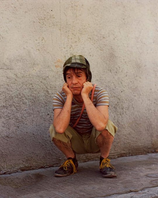 Essa foto do Chaves agachado, ficou boa porque aumentaram o colorido dela e parece que usaram um scanner de boa qualidade. Não é uma "foto da foto" como são várias que temos aí.