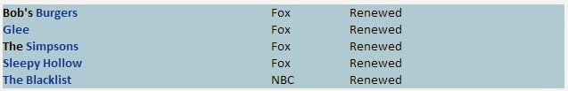 Veja abaixo a previsão de um dos editores do site TV By The Numbers (especializado na audiência da TV americana) sobre a possibilidade de cancelamento ou renovação das séries baseado na audiência atual e também de acordo com informações dos bastidores. Destacando que esse prognóstico é para a próxima temporada (compreendido entre setembro de 2014 a maio de 2015).