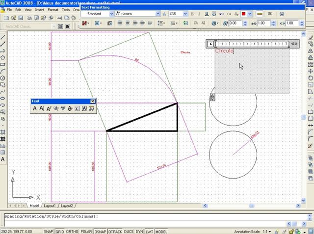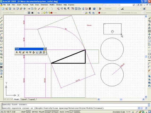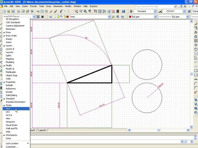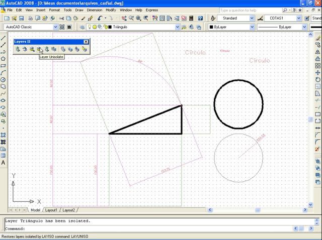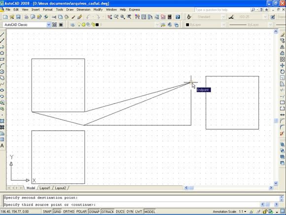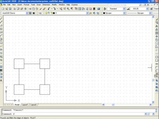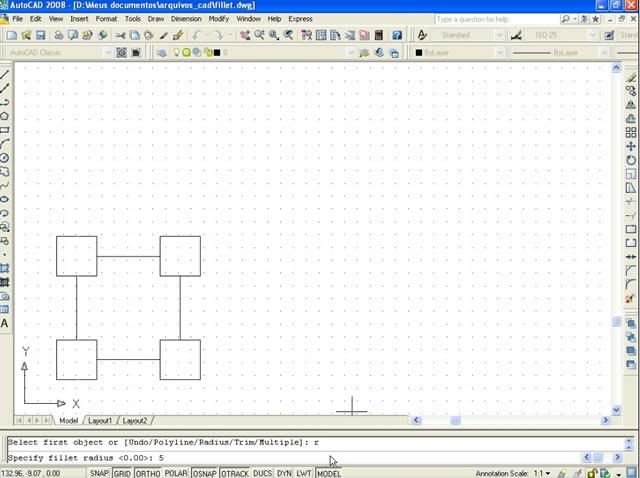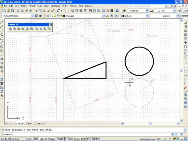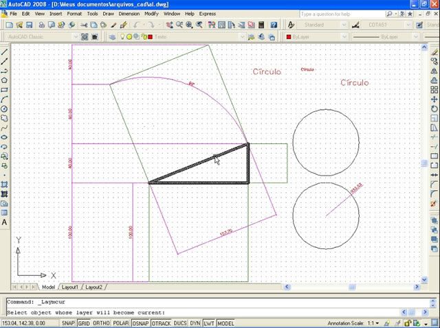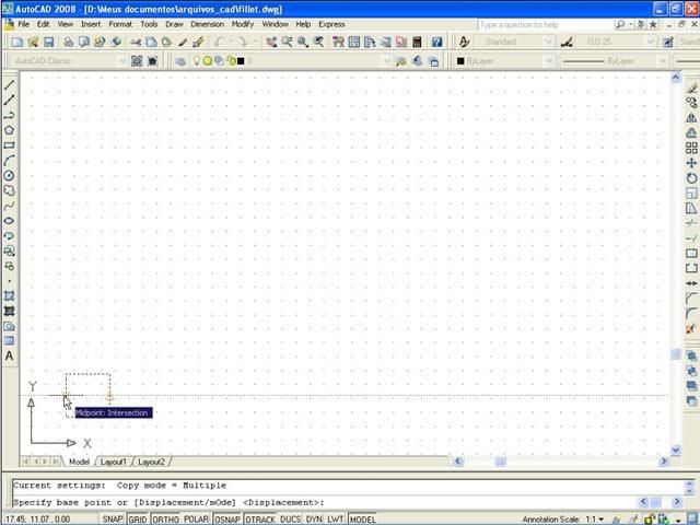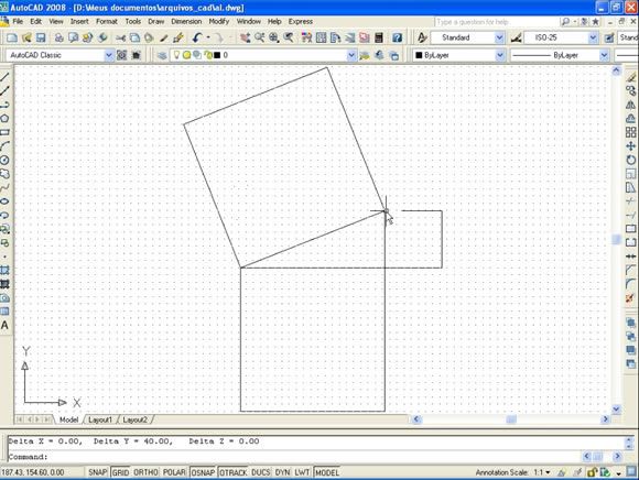 Postado 24 de Maio de 2007 18 anos Importante Para que a página não fique extensa visualmente, cada capítulo estará dentro de um spoiler. Em função das enúmeras imagens no decorrer do tutorial, todas elas estarão escondidas por trás de um botão clicável, bem como, evitar a quebra de layout. Índice Apresentação Instalando o AutoCAD 2008 Configurando o Sistema Criando um Novo Arquivo Segurança no Projeto Desenhando no AutoCAD com as Coordenadas Linhas e Polilinhas Explosão de Linhas e Conversão de Linhas para Polilinhas Curvas e Objetos Fundamentais Polígonos Edição Copiando Objetos Editando Linhas Cópias Múltiplas com o Array Editando na Diagonal e Copiando com o Offset Eliminando Múltiplas Linhas e Chanfrando Objetos Calculando Distâncias Como Achar os Quadrados dos Catetos e da Hipotenusa Camadas Cotas Dimensões Texto Outras Ferramentas da Camada Para Praticar Novidades no AutoCAD 2009 (NOVO)