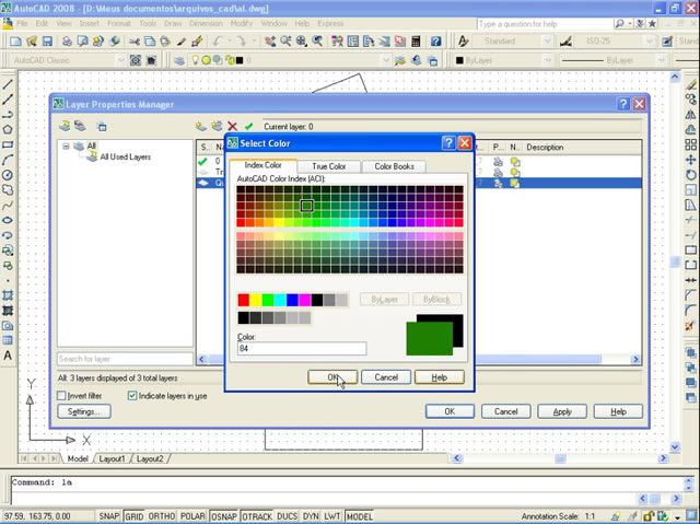 Postado 16 de Agosto de 2007 18 anos Autor Apresentação Qual o objetivo do AutoCAD? A construção de desenhos técnicos em duas dimensões e, limitadamente, modelagens em três dimensões. Qual o objetivo deste tutorial? Mostrar a importância desta ferramenta, bem como, tirar aquela imagem do usuário final de que o AutoCAD é um bicho de sete cabeças, que ninguém consegue fazer nada de nada nele, e mostrar que com dedicação, poderá futuramente aprender a fazer grandes projetos, por exemplo, modelagens em 3D. E porque não começamos já com o AutoCAD 3D? Exatamente porque antes disso, é fundamental o conhecimento nas ferramentas básicas do AutoCAD, para que não encontre nenhuma dificuldade quando passarmos para o 3D, assunto do próximo tutorial. Objeto em vista 2D. Aplicação de hachura. Objeto em vista 3D com as arestas sendo exibidas. Com a exibição das arestas, ele tanto pode ser visto como um cubo em perspectiva como pode ser visto também como um polígono de seis lados. Objeto em vista 3D com as arestas ocultas. Objeto em vista 3D com cores de preenchimento. Fotorrealismo. No decorrer do tutorial estaremos utilizando as formas geométricas como cobaia das ferramentas. E quem pretende se dedicar nesse software, aprenderá a fazer uma modelagem simples como na figura abaixo, um modelo feito por mim na minha primeira aula de AutoCad 2004 3D (que por coincidência foi no ano de 2004, quando já tinha o AutoCAD 2005, mas por esse último só rodar a partir do Windows 2000, enquanto a versão 2004 rodava no Windows 98; foi decidido aderir ainda a versão 2004, por naquele ano ainda ter sido muito comum a utilização do Windows 98 nos computadores domésticos e comerciais): Eu aprendi a fazer modelagens na primeira aula, na parte 3D, mas foi na terceira aula que eu aprendi a colocar texturas e fazer efeito de luz nos objetos. Neste tutorial eu ensinarei, da maneira mais simples, como manejar essa poderosa ferramenta. ...Mãos a Obra!!!! Instalando o AutoCAD 2008 A partir da versão 2007, o AutoCAD passou a ter dois CDs de instalação. Até o AutoCAD 2006 era um único CD para instalar. Insira o primeiro cd na unidade de cd. Clique em "Install Products". Clique em "Next". Certifique de que está marcada a opção "AutoCAD 2008" e clique em "Next". Marque a opção "I Aceppt" e clique em "Next". Preencha o necessário. Clique em "Install". Está instalando os componentes. Instalando o próximo componente. Mais um componente. E finalmente está instalando o AutoCAD 2008. Insira o segundo cd para prosseguir. Depois de instalado, clique em "Finish" para concluir. Configurando o Sistema Agora iremos abrir o nosso programa recém-instalado. Naturalmente foi criado um atalho na área de trabalho do Windows, mas eu vou mostrar o caminho em que se encontra o atalho do programa, pelo menu iniciar. Com o menu clássico do Windows: Iniciar => Programas => Autodesk = > AutoCAD2008 => AutoCAD2008. Com o menu exclusivo do Windows XP, só muda de "Programas" para "Todos os programas". Escolha a opção "Activate the product" para ativarmos, do contrário o programa irá deixar de funcionar em 30 dias. Com o CD 2 ainda no drive de cd, localize a pasta "Crack" e copie um serial do arquivo "install.txt". Cole o serial no campo "Enter your serial number of Group ID:" e copie o código do "Request code" em seguida. Ainda na pasta Crack, abra o arquivo "AutoCAD-2008-keygen.rar" e dê um duplo clique em "AutoCAD-2008-keygen.exe". Cole o código no campo "Request Code". Se estiver correto, clique em "Calculate" para retornar o "Auth Code". Marque as opções: "Enter an activation code" e "Paste the activation code". Cole o Auth Code lá para clicar em "Next". O programa está ativado, não irá mais expirar. Clique em "Finish" para concluir. Escolha uma das opções e dê OK (obviamente eu escolhi NÃO). Esse é o ambiente de trabalho. No detalhe está o Prompt de comando. Para quem não quiser utilizar a barra de ferramentas, é só utilizar a linha de comando. Digite "op" e dê Enter para abrir as opções de configuração. Na aba "Display" clique em "Colors". Escolha o White ou uma cor de sua preferência (se quiser continuar com o Black fique a vontade). Clique em "Apply & Close". Na aba "System" era para estar dentro do campo "General Options" as opções "Do not show StartUp dialog box", "Show StartUp dialog box" (opção essa que esteve no AutoCAD até a versão 2007); mas parece que o Drop-Down tomou doril (no detalhe) na versão 2008. O "StartUp dialog Box" é muito importante para quem está começando a lidar com AutoCAD. Pois nele você pode fazer a pré-configuração do ambiente de trabalho, antes de iniciar um novo projeto. Esperamos que na próxima versão esteja de volta com essa opção, nas opções de configuração. Para ativar essa opção então, na versão 2008, digite no Prompt de comando: startup. Dê Enter e digite "1", antes de dar outro Enter. Para voltar para o "Do not show StartUp dialog box" (sem o StartUp) digite a linha de comando anterior, mas digite "0" no lugar de "1". Criando um Novo Arquivo Ao abrir o AutoCAD, vai aparecer essas opções: Clique no quarto ícone "Use a Wizard". Escolha a opção "Advanced Setup" e dê OK. Marque a opção "Decimal" e deixe duas casas decimais após o ponto. Clique em "Avançar". Marque a opção "Decima Degreesl" e deixe duas casas decimais após o ponto. Clique em "Avançar". Marque a opção "East" e clique em "Avançar". Marque a opção "Counter-Clockwise" e clique em "Avançar". Defina 10 centímetros de largura (Width) por 15 centímetros de altura (Length) e clique em "Concluir" (não é para dar Enter e sim clicar no "Concluir", senão prevalecerá a altura apresentada anteriormente). Clique com o botão direito em "GRID" e vá em "Seetings..." Deixe o "Grid X spacing" e o "Grid Y spacing" em "1" centímetro de espaço. Novamente com o botão direito em "GRID", escolha o "On" para ativar. Se nota os pontos agora n
